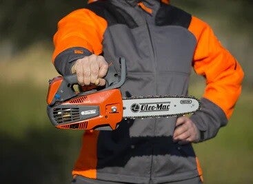 Équipé d'une poignée arrière confortable où se trouvent le bouton d'alimentation et le dispositif de sécurité du frein de chaîne, qui arrête le mouvement de la chaîne en cas de danger. Il est doté du système EasyOn pour un démarrage facile qui réduit le rebond lors de l'allumage. La poignée avant est ergonomique et très large pour faciliter la prise de la main gauche de l'opérateur.